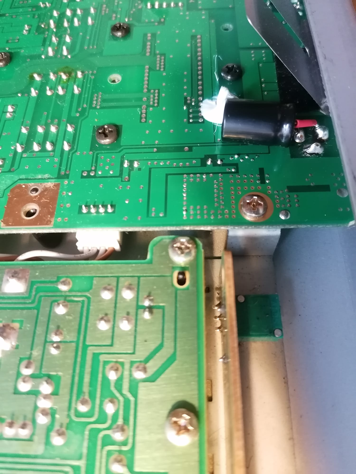 So we placed an electrolyte capacitor (16V, 680uf) across the 9V input connector inside the device, in order to provide power when intermittent disconnects appear due to movement within the barrel plug socket.
