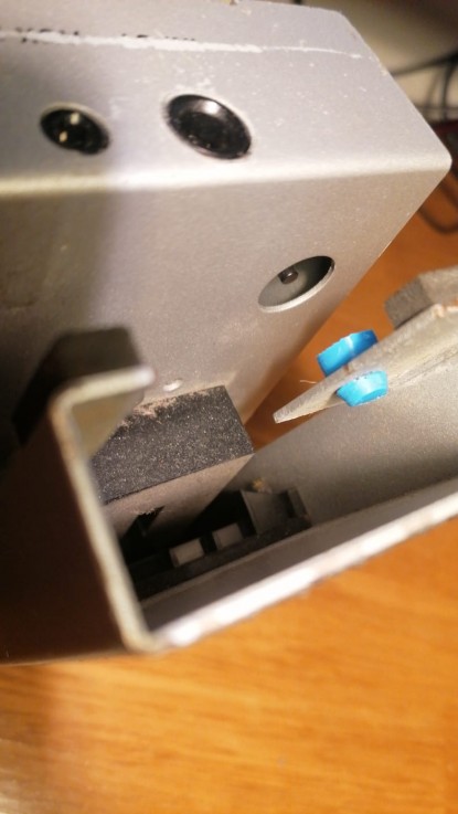 This switch should have always been a microswitch – in my opinion.Nevertheless, if you don’t seem to be able to enable “sample and play” or any other function that needs the foot pedal on the AX1000G to be fully pressed open, check if you are missing the blue element in the photo below: